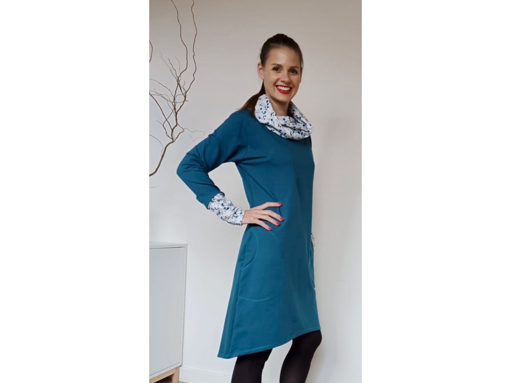 Mikinové šaty s kapsami, límcem a náplety, bavlněné, hřejivé