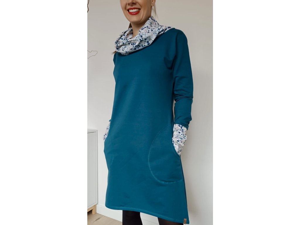 Šaty Maja - tmavá petrolejová s modrými kvítky