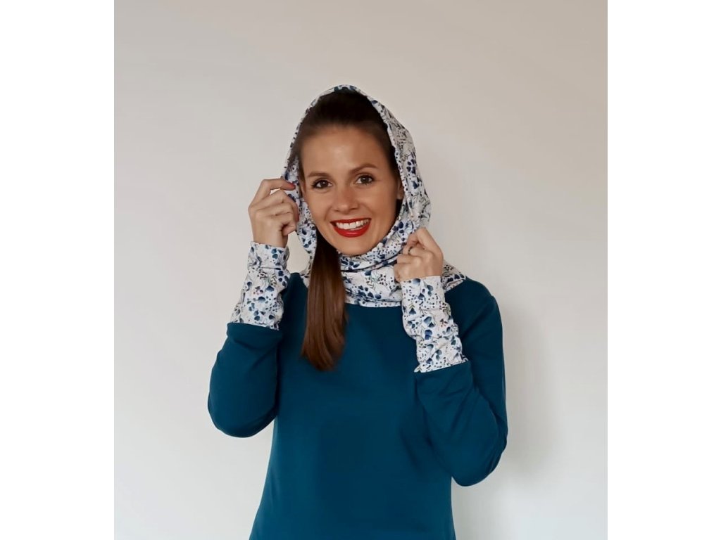 Kombinuje pohodlí a teplo mikiny s elegancí šatů. Náplety zajišťují lepší přilnutí k tělu a udržení tepla.